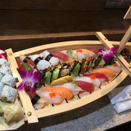 We went to Naru's for my dads birthday and had a great time. You can sit by the cook with a group of 3 or more, otherwise there's table seating. This place was jamming on a Saturday night so be prepared to wait a little. My mom says that there no wait at all during the day for lunch. My parents got calamari & scallop hibachi. My mom wasn't too happy with the calamari and my dad loved the scallops. The vegetable sushi was excellent and I was delightfully surprised because I didn't know mine came with Tofo. The meal came with salad, soup and ice cream. I had to try the green tea ice cream. It was a little weird but not bad. I recommend this place for great atmosphere, service and food. The prices were reasonable.